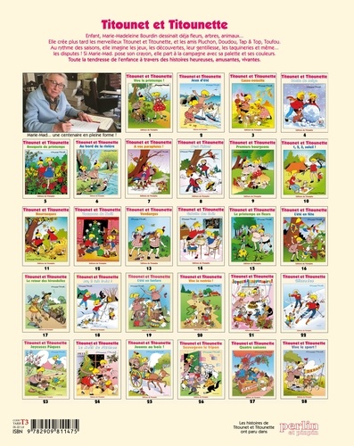 Découvrez l''univers enchanté de la petite bande Titounet et Titounette et leurs amis Pluchon, Doudou, Toufou, Tap et Top ! A partir de 3 ans A propos de Marie-Mad Bourdin : Marie-Mad Bourdin, dessinatrice et scénariste des héros Titounet et Titounette, s'amuse depuis l'âge de 7 ans à dessiner tout ce qu'elle admire : les fleurs, les arbres, les animaux... Elle a travaillé pendant de nombreuses années chez Fleurus avant de prendre une retraite bien méritée à la campagne où elle travaille du matin au soir dans son atelier à la réalisation de tableaux, de sculptures qui font la joie des uns et des autres lors des nombreuses expositions auxquelles elle participe.
