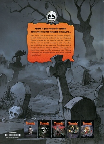 Quand le plus vorace des zombies s'allie avec les pires tornades de l'univers... Rien ne va plus au cimetière de Tizombi. Margotik, sa bien-aimée humaine, a été enlevée par l'effroyable Vésuve, un magicien qui n'a qu'un seul but : transformer la Terre en planète Zombie à l'aide d'un élixir secret. Aidé de ses voraces amis, Tizombi est prêt à tout pour retrouver Margotik. Même à faire appel aux Super Sisters pour leur filer un coup de main ? Même à supporter les multiples bisous de la super tornade à bouclettes ?