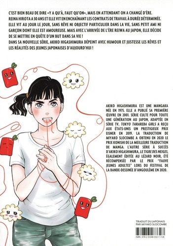 C'est bien beau de dire "Y a qu'à, faut qu'on", mais en attendant on a changé d'ère. Reina Hirota a 30 ans et elle vit en enchaînant les contrats de travail durée déterminée. Elle vit au jour le jour, sans rêve ni objectif particulier dans la vie, sans petit ami ni garçon dont elle est amoureuse. Mais avec l'arrivée de l'ère Reiwa au Japon, elle décide de se mettre en quête d'un but dans sa vie ! Dans sa nouvelle série, Akiko Higashimura dépeint avec humour et justesse les rêves et les réalités des jeunes japonaises d'aujourd'hui !