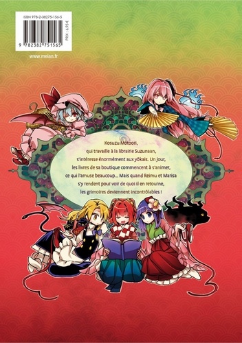 Les mêmes terres illusoires, la même Reimu. Et puis... Cette petite collectionneuse de grimoires démoniaques un peu étrange... Kosuzu Motoori, qui travaille à la librairie Suzunaan, s'intéresse énormément aux yôkais. Un jour, les livres de sa boutique commencent à s'animer, ce qui l'amuse beaucoup... Mais quand Reimu et Marisa s'y rendent pour voir de quoi il en retourne, les grimoires deviennent incontrôlables ! Reimu et Marisa se retrouvent mêlées à des événements surnaturels, elles aussi ? !