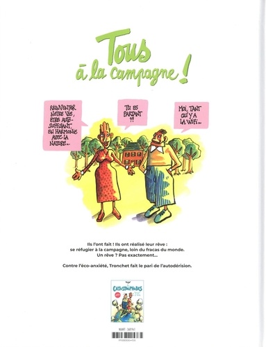 Ils l'ont fait ! Ils ont re alise leur re ve : se re fugier a la campagne, loin du fracas du monde. Un re ve ? Pas exactement... Contre l'e co-anxie te , Tronchet fait le pari de l'autode rision. Dans Tous à la campagne ! , on retrouve le couple que Tronchet mettait en scène dans les Catastrophobes. Cette fois, ça y est, ils franchissent le pas et déménagent à la campagne ! Mais les concessions sont nombreuses, et elles sont clairement plus faciles à mettre en pratique pour elle que pour lui... Grâce à ce décalage au sein du couple, Tronchet parvient à nous faire rire de leur situation en même temps qu'il nous amène à nous interroger sur la nôtre.