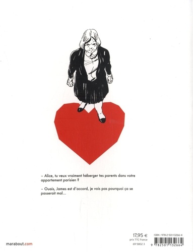 Alice décide avec son mari James d'héberger ses parents dans leur appartement parisien. Le couple doit faire face aux accès de furie de la mère bipolaire. Alice, tu veux vraiment héberger tes parents dans votre appartement parisien ? Ouais, James est d'accord, je vois pas pourquoi ça se passerait mal... Sauf que rien ne se passera comme prévu... La mère d'Alice est difficilement contrôlable. Entre gentillesse appuyée, mensonges et crises de paranoïa, elle va faire vivre l'enfer à sa fille et son gendre. Tour à tour, revêche, méchante, agressive, manipulatrice, puis adorable et aimante, la mère est le personnage central inquiétant du récit. Cette histoire de famille vire au thriller psychologique. Le diable est dans l'appartement... Sous le regard impuissance du père. Alice et James trouveront trouve rune solution, et vite... Les dessins d'un genre classique sont rehaussés de couleurs pops assumées.