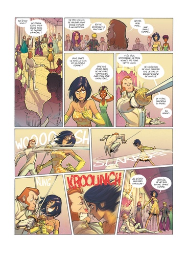 Amitié, Amour, Baston et Boules de feu. Un pour toutes, toutes pour un. Voici les nouvelles mousquetaires ! Elles sont trois. Une princesse magicienne, une redoutable escrimeuse et une brillante bricoleuse. Elles ne se connaissent pas, ne s'apprécient pas, mais devront mettre de côté leurs différences pour sauver le monde. Combats, trahisons, explosions, voyages aux quatre coins des royaumes, complots, mariages arrangés, amours naissantes et rivalités fratricides, rien ne leur sera épargné. Et puis il y a lui. Lui qui ne sait rien faire, ne comprend rien, et s'est retrouvé au milieu de cette histoire. Mais il est gentil, hein. C'est déjà ça.