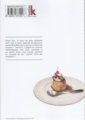 Hiroki Dan, le tueur en série recherché dans tout le pays, apparaît brusquement devant Reiji Mano et lui soumet la demande suivante : "tue-moi". L'expert en sciences médicolégales doit alors procéder à un ultime choix. Leur histoire s'achève ici. Laquelle de leur "justice" finira par triompher ?