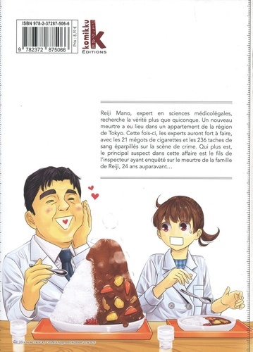 Un expert de la police scientifique au service de la justice ! Adapté en série TV au Japon en 2019 ! Le département spécial de la police appelé "Institut d'enquête scientifique' est chargé de relever tous les éléments des scènes de crime qui pourraient aider à la résolution des enquêtes. C'est le premier jour de travail dans ce département pour Nonna. Elle est placée sous la direction de Reiji, un policier scientifique hors pair qui est dans le service depuis 8 ans. Ce dernier est peu sociable, mais c'est un technicien de talent. Il est entré dans ce département, car 23 ans auparavant, sa famille a été brutalement assassinée, et depuis, il n'a pour but que de servir la justice et arrêter les criminels. Dans ce premier tome, les enquêteurs sont devant deux cas sensibles : un viol ayant causé la mort in utero d'un foetus et un meurtre où un fils aurait tué son père. On apprendra dans ce dernier cas que le père violait sa fille, que celle-ci l'a tué. Le frère a alors endossé la responsabilité du crime pour la protéger.