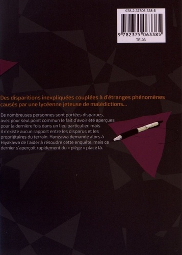 Des disparitions inexpliquées couplées à d'étranges phénomènes causés par une lycéenne jeteuse de malédictions... De nombreuses personnes sont portées disparues, avec pour seul point commun le fait d'avoir été aperçues pour la dernière fois dans un lieu particulier, mais il n'existe aucun rapport entre les disparus et les propriétaires du terrain. Hanzawa demande alors à Hiyakawa de l'aider à résoudre cette enquête, mais ce dernier s'aperçoit rapidement du " piège " placé là.
