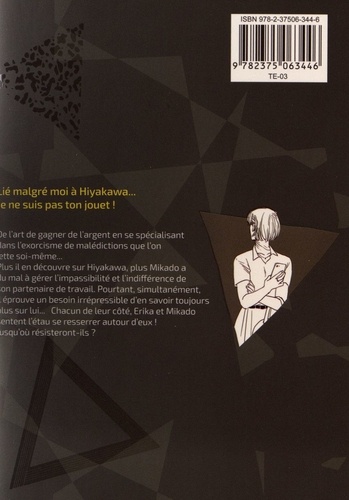 De l'art de gagner de l'argent en se spécialisant dans l'exorcisme de malédictions que l'on jette soi même... Plus il en découvre sur Hiyakawa, plus Mikado a du mal à gérer l'impassibilité et l'indifférence de son partenaire de travail. Pourtant, simultanément, il éprouve un besoin irrépressible d'en savoir toujours plus sur lui... Chacun de leur côté, Erika et Mikado sentent l'étau se resserrer autour d'eux ! Jusqu'où résisteront-ils ?