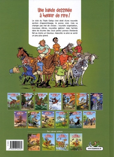 Attention, nouveaux arrivants : les poneys débarquent au club ! Le club du Triple Galop s'est doté d'une nouvelle section d'apprentissage : le poney club pour les bambins de 3/4 ans. Monique va enseigner à ses apprentis cavaliers les bases de l'équitation. Contact, respect de l'animal et activités ludiques sont au programme. Du côté des chevaux, cela va changer pas mal de choses : nouvelle organisation, nouveaux élèves, nouvelles galères ! Mais l'arrivée dans les écuries des (tout petits) poneys Shetlands fait au moins un heureux : Mascotte. Il va ainsi se sentir un peu plus grand.