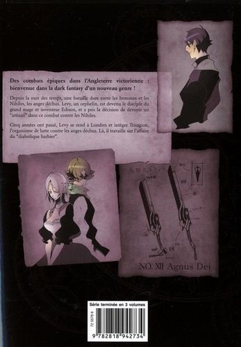 Des combats épiques dans l'Angleterre victorienne : bienvenue dans la dark fantasy d'un nouveau genre ! Depuis la nuit des temps, une bataille dure entre les hommes et les Nihiles, les anges déchus. Levy, un orphelin, est devenu le disciple du grand mage et inventeur Edison, et a pris la décision de devenir un "artisan" dans ce combat contre les Nihiles. Cinq années ont passé, Levy se rend à Londres et intègre Trisagion, l'organisme de lutte contre les anges déchus. Là, il travaille sur l'affaire du "diabolique barbier".