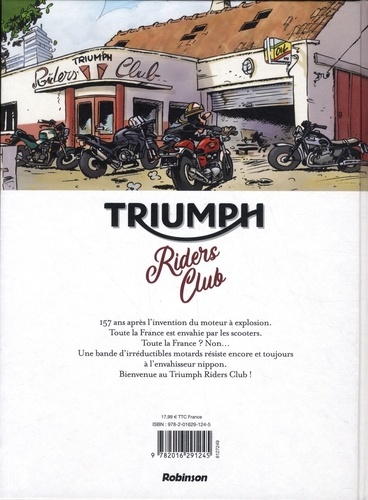 Découvrez dans cette intégrale les deux tomes des aventures du Triumph Riders Club ! Tome 1 : Des cylindres et des hommes Les Gentlemen Riders, membres du Triumph Riders Club, créé et dirigé par Marcel Dosseret, un ancien mécanicien chevronné de la marque, décident d'aller à Coventry, berceau historique de la marque Triumph, afin de mettre la main sur une pièce rare... Tome 2 : Coup de kick à Notthing Hill A la fin des années 60, le Ace Café de Londres attirait toutes les têtes brulées en quête d'adrénaline. C'est là que Marcel Doceret, dit "Le Président " , a rencontré l'amour de sa vie... Un pèlerinage au pays des belles anglaises s'imposait donc pour le Triumph Riders Club !