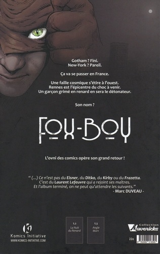 Gotham ? Fini. New-York ? Pareil. Ca va se passer en France. Une faille cosmique s'étire à l'ouest. Rennes est l'épicentre du choc à venir. Un garçon grimé en renard en sera le détonateur. Son nom ? Fox-Boy. L'ovni des comics opère son grand retour
