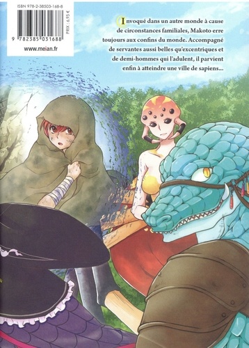 Son voyage parsemé de déception est loin d'être fini ! Invoqué dans un autre monde à cause de circonstances familiales, Makoto erre toujours aux confins du monde. Accompagné de servantes aussi belles qu'excentriques et de demi-hommes qui l'adulent, il parvient enfin à atteindre une ville de sapiens... Alors qu'il avait enfin atteint une ville de " sapiens " il tombe immédiatement sur de gros ennuis !! Le second tome des pérégrinations dans un autre monde d'un héros toujours aussi malchanceux !! Les ennuis s'enchaînent les uns après les autres !!