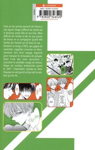 Face au fan service excessif de Tamon à son égard, Utage s'efforce de mettre de la distance entre elle et son bias. Mais difficile de l'éviter et de ne pas passer de temps en sa compagnie quand elle tombe sur lui dans la rue... Pendant ce temps, F/ACE, qui gagne en notoriété, s'apprête à tourner un documentaire lors d'un voyage organisé pour marquer le renouveau du groupe. Etant l'une des rares personnes à connaître le véritable visage de Tamon, Utage est soudain embauchée parmi le staff ! Cependant, quelqu'un dans l'équipe ne voit pas d'un bon oeil la relation qui les lie...