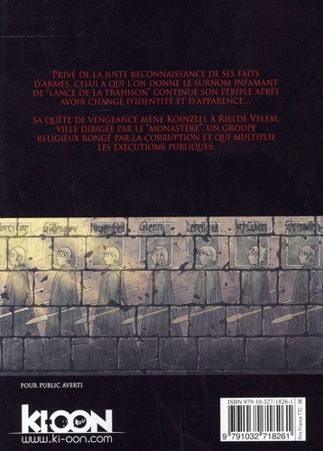 Privé de la juste reconnaissance de ses faits d'armes, celui à qui l'on donne le surnom infamant de "lance de la trahison" contenue son périple après avoir changé d'identité et d'apparence... Sa quête de vengeance mène Köinzell à Rielde Velem, ville dirigée par le "monastère", un groupe religieux rongé par la corruption et qui multiplie les exécutions publiques.