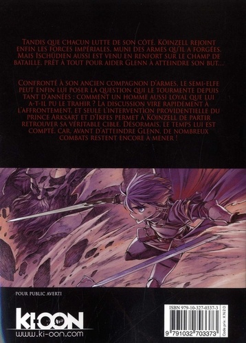 Tandis que chacun lutte de son cote, Köinzell rejoint enfin les forces impériales, muni des armes qu'il a forges. mais Ischüdien aussi est venu en renfort sur le champ de bataille, prêt a tout pour aider Glenn a atteindre son but... Confronte a son ancien compagnon d'armes, le semi-elfe peut enfin lui poser la question qui le tourmente depuis tant d'années : comment un homme aussi loyal que lui a-t-il pu le trahir ? la discussion vire rapidement A l'affrontement, et seule l'intervention providentielle du prince Arksart et d'Ikfes permet à Köinzell de partir retrouver sa véritable cible. Désormais, le temps lui est compte, car, avant d'atteindre Glenn. de nombreux combats restent encore a mener !