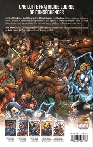 Les New Ultimates de Carol Danvers et les Ultimate Avengers de Nick Fury ont pour mission de protéger le monde. Cependant, si la première super-équipe opère en toute légitimité, la seconde travaille dans l'ombre. Les héros l'ignorent encore mais une machination s'apprête à les diviser. La bataille qui en découlera sera meurtrière... Mark Millar (Civil War, The Ultimates) conclut sa prestation sur la version Ultimate des Avengers dans un récit illustré par Leinil Francis Yu (Seçret Invasion, Ultimate Wolverine vs. Hulk).