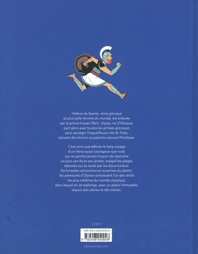 La plus belle femme du monde, Hélène de Sparte, a été enlevée par Pâris, prince troyen. Ulysse, roi d'Ithaque, part avec l'armée grecque assiéger l'orgueilleuse cité de Troie. Tel est le début du récit le plus connu du monde classique ! Rusé, courageux et généreux, Ulysse cherchera par tous les moyens à ramener ses compagnons vers les rivages d'Ithaque. Mais, guetté par les monstres, victime des caprices de dieux en colère, il mettra vingt ans à retrouver son foyer. Pénélope son épouse l'aura-t-elle attendu si longtemps ? Conçue en courts épisodes accessibles à tous, cette adaptation de l'Odyssée en bande dessinée a d'abord été publiée dans la collection BD Kids. Sous une couverture inédite, Ulysse est réédité aujourd'hui en grand format cartonné, pour donner toute la place aux sublimes illustrations de Benjamin Adam, et émerveiller une nouvelle génération de lectrices et lecteurs !