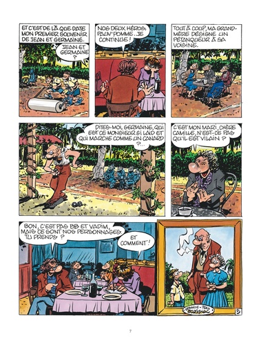 Quand il était gosse, Daniel Pennac passait ses vacances à La Colle-sur-Loup, sur la Côte d'Azur. Soleil, figuiers et grande treille sous laquelle on joue à la pétanque. C'est là qu'avec son frère Bernard il fait la rencontre de Jean et Germaine : lui, grand chauve façon héron ; elle, maigre, rose et rieuse. Toujours de bonne humeur, ils intriguent avec leur joie de vivre. Pas d'enfants, pas de boulot, Jean et Germaine vivent un amour sans intermédiaire, un amour sédentaire, un amour exemplaire !