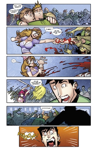 Quitter le Comic Con en proie aux zombies, c'était la partie amusante de l'histoire. Il faut maintenant fuir San Diego, une ville abandonnée entièrement aux zombies ! Notre groupe de fans dépassés par les événements, les Fossoyeurs, n’a nulle part où se cacher, et la lutte pour la survie commence alors que la menace zombie se propage progressivement sur toute la côte ouest du territoire… Savant mélange entre Walking Dead de Robert Kirkman, Runaways de Brian K. Vaughan et Tony Chu pour sa patte graphique décalée et cartoonesque, Fanboys vs Zombies est un comics d'aventure plein d'humour, d'action, de zombies et de références à la culture geek, dont chaque case fourmille de clins d'oeil.