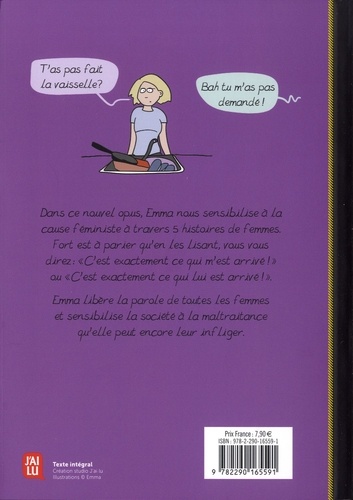 Dans ce nouvel opus, Emma nous sensibilise à la cause féministe à travers 5 histoires de femmes. Fort est à parier qu'en les lisant, vous vous direz : "C'est exactement ce qui m'est arrivé ! " ou "C'est exactement ce qui lui est arrivé ! ". Emma libère la parole de toutes les femmes et sensibilise la société à la maltraitance qu'elle peut encore leur infliger.