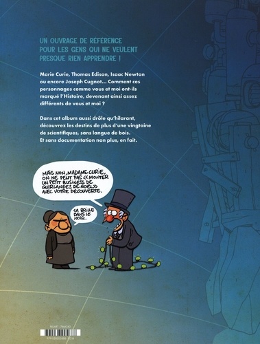 Un ouvrage de référence pour les gens qui ne veulent presque rien apprendre. Marie Curie, Thomas Edison, Isaac Newton ou encore Joseph Cugnot... Comment ces personnages comme vous et moi ont-ils marqué l'Histoire, devenant ainsi assez différents de vous et moi ? Dans cet album aussi drôle qu'hilarant, découvrez les destins de plus d'une vingtaine de scientifiques, sans langue de bois. Et sans documentation non plus, en fait.