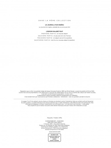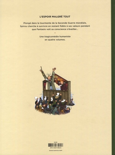 Plongé dans la tourmente de la Seconde Guerre mondiale, Spirou cherche à survivre en restant fidèle à ses valeurs pendant que Fantasio voit sa conscience s'éveiller... Une tragicomédie humaniste en quatre volumes.