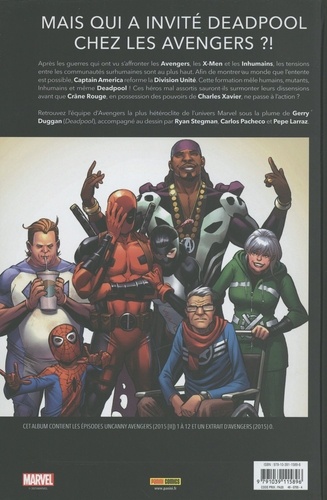 Captain America a décidé d'élargir l'équipe des Uncanny Avengers. Après avoir accueilli des mutants, voilà qu'il débauche une Inhumaine ! Même Deadpool est recruté, ce qui fait grincer des dents certains membres. Mais cette arrivée devient un détail avec le retour d'Ultron, qui a fusionné avec Hank Pym ! Changement d'équipe artistique pour ce quatrième volume MARVEL DELUXE qui réédite la populaire série Uncanny Avengers. C'est désormais Gerry Duggan (dont la côte de popularité a explosé avec Deadpool) qui prend les commandes et amène avec lui le Mercenaire Disert !