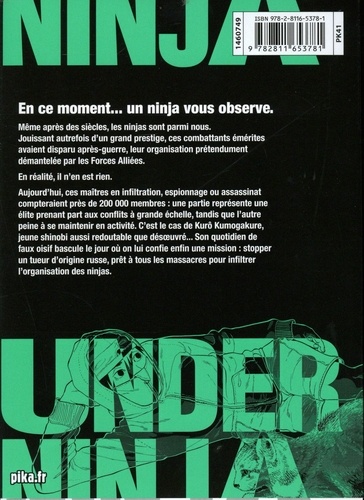 Même après des siècles, les ninjas sont parmi nous. Jouissant autrefois d'un grand prestige, ces combattants émérites avaient disparu après-guerre, leur organisation prétendument démantelée par les Forces Alliées. En réalité, il n'en est rien. Aujourd'hui, ces maîtres en infiltration, espionnage ou assassinat compteraient près de 200 000 membres : une partie représente une élite prenant part aux conflits à grande échelle, tandis que l'autre peine à se maintenir en activité. C'est le cas de Kurô Kumogakure, jeune shinobi aussi redoutable que désoeuvré... Son quotidien de faux oisif bascule le jour où on lui confie enfin une mission : stopper un tueur d'origine russe, prêt à tous les massacres pour infiltrer l'organisation des ninjas.