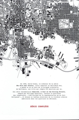 En 1988, David Simon, le créateur de la série The Wire (Sur écoute), alors reporter au Baltimore Sun, a passé un an au sein de la brigade criminelle de Baltimore, une ville qui compte 240 meurtres par an. Son récit documentaire Homicide, A Year on the Killing Streets, adapté par Philippe Squarzoni, raconte le quotidien des inspecteurs - très éloigné de la représentation qu'en fait Hollywood -, et dresse un tableau minutieux de la violence urbaine américaine dans les quartiers en détresse.
