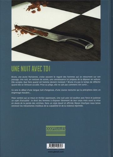 Un polar féministe d'une troublante ambiguïté. Brune est une jeune parisienne qui croise souvent le regard des hommes se retournant sur son passage. Un soir, en rentrant de soirée, un copain lui propose de la déposer en voiture. Elle accepte. Que faire quand il devient insistant ? Brune n'a pas le temps de réfléchir quand elle se retrouve acculée. Prise au piège, elle ne sait pas comment s'en sortir... Ce sera le début d'une longue nuit d'angoisse. Avec un cadavre sur les bras, affolée, la jeune femme se retrouvera dans une course nocturne pour dissimuler le corps ce qui la précipitera dans un engrenage macabre. Des retournements de situations aussi inattendus qu'invraisemblables rythment ce récit puissant et engagé qui nous interpelle et ouvre le débat. Ce polar sombre qui se meut en thriller oppressant et nous rappelle After Hours soulève avec force et justesse un sujet d'actualité : le droit des femmes à disposer librement de leur corps mais aussi la mise en doute de la parole des victimes. Dans un style épuré et terriblement efficace Maran Hrachyan (Patrick Dewaere - 2021) déploie son talent à travers ce récit étonnant qui nous laisse entrevoir les mécanismes insidieux de la culpabilité et de la violence réprimée. A lire absolument.