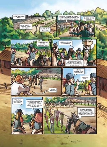 QUAND LE POULS DE L'AMITIE SE MESURE AU MARTELEMENT DES SABOTS ! Dure période pour Maëlys. Alors qu'elle doit faire face au divorce de ses parents, un incendie détruit les écuries. Mais il en faudrait davantage pour l'empêcher de participer à son premier concours de saut d'obstacles avec son pur-sang Cheddar Soup ! Evidemment, cette peste d'Elise est encore de la partie, surtout que l'enjeu de la course est énorme avec une place dans l'équipe nationale à gagner. Cependant, de nombreuses distractions freinent la concentration de Maëlys : l'amour bien sûr, mais aussi des choix difficiles... Faut-il permettre à la jument Kimono my House d'avoir des jumeaux même si cela la met en danger ? Pour la première fois, Maëlys et sa meilleure amie Béa ne partagent pas du tout le même avis...