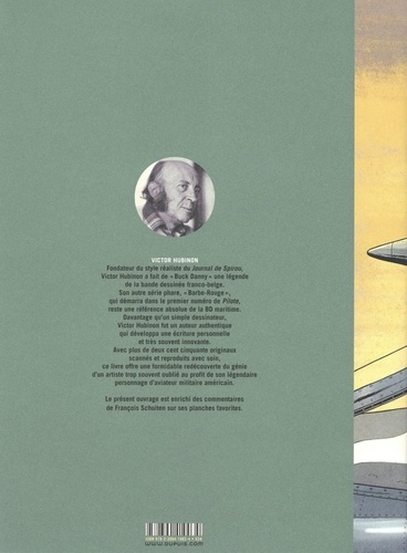 Fondateur du style réaliste du Journal de Spirou, Victor Hubinon a fait de "Buck Danny" une légende de la bande dessinée franco-belge. Son autre série phare, "Barbe-Rouge", qui démarra dans le premier numéro de Pilote, reste une référence absolue de la BD maritime. Davantage qu'un simple dessinateur, Victor Hubinon fut un auteur authentique qui développa une écriture personnelle et très souvent innovante. Avec plus de deux cent cinquante originaux scannés et reproduits avec soin, ce livre offre une formidable redécouverte du génie d'un artiste trop souvent oublié au profit de son légendaire personnage d'aviateur militaire américain. Le présent ouvrage est enrichi des commentaires de François Schuiten sur ses planches favorites.