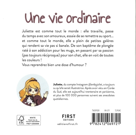 Juliette est comme tout le monde : elle travaille, passe du temps avec son amoureux, essaie de se remettre au sport... et comme tout le monde, elle a plein de petites galères qui rendent sa vie pas si banale. De son baptême de plongée raté à son addiction pour les mugs, en passant par sa passion (pas toujours réciproque) pour son chat, elle en voit de toutes les couleurs ! Vous reprendrez bien une dose d'humour ?