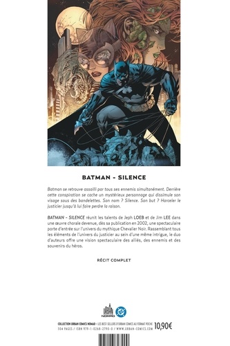 Batman se retrouve assailli par tous ses ennemis, lorsqu'un mystérieux personnage qui dissimule son visage sous des bandelettes apparaît. Son nom ? Silence. Son but ? Harceler le justicier jusqu'à lui faire perdre raison. Catwoman saura-t-elle lui apporter l'aide et le réconfort dont il a cruellement besoin ?
