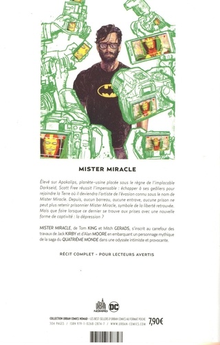 Elevé sur Apokolips, planète-usine placée sous le règne de l'implacable Darkseid, Scott Free réussit l'impensable : échapper d ses geôliers pour rejoindre la Terre où il deviendra l'artiste de l'évasion connu sous le nom de Mister Miracle. Depuis, aucun barreau, aucune entrave, aucune prison ne peut plus retenir prisonnier Mister Miracle, symbole de le liberté retrouvée. Mais que faire lorsque ce dernier se trouve aux prises avec une nouvelle forme de captivité : la dépression ? Mister Miracle, de Tom King et Mitch Gerads, s'inscrit au carrefour des travaux de Jack Kirby et d'Alan Moore en embarquant un personnage mythique de la saga du Quatrième monde dans une odyssée intimiste et provocante.