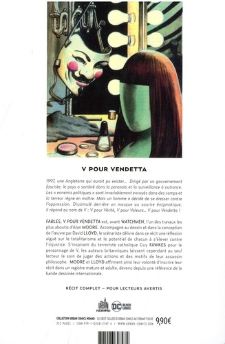 1997, une Angleterre qui aurait pu exister... Dirigé par un gouvernement fasciste, le pays a sombré dans la paranoïa et la surveillance à outrance. Les "ennemis politiques" sont invariablement envoyés dans des camps et la terreur règne en maître. Mais un homme a décidé de se dresser contre l'oppression. Dissimulé derrière un masque au sourire énigmatique, il répond au nom de V : V pour Vérité, V pour Valeurs... V pour Vendetta !