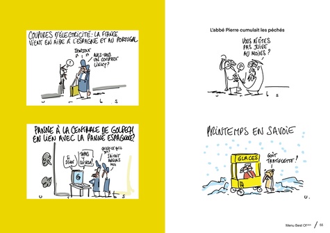 Urbs dessine chaque jour pour Sud Ouest , Le Monde , Le Canard enchaîné , La revue des Deux-Mondes, Le Point . Ses dessins sont plutôt tranchants, caustiques, très humour noir. Entre l'affaire Bétharram, la guerre en Ukraine, le réchauffement climatique, l'actualité lui donne de nombreux thèmes sur lesquels exercer son oeil vif et critique.