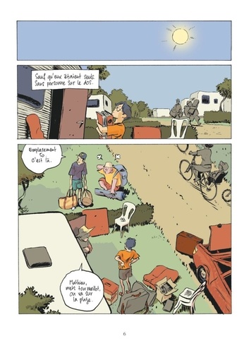 Une chronique des derniers feux de l'adolescence... Dans le métro parisien, Mathieu aperçoit une femme qu'il n'avait pas vue depuis des années... Les souvenirs reviennent depuis ces vacances d'été qu'ils ont passées ensemble au bord de la mer. Franck le gros rigolo et Greg le beau gosse étaient venus camper entre copains. Tout comme Marine l'audacieuse et Amélie la réservée ! Mathieu, lui, s'ennuyait ferme à jouer au scrabble dans la caravane de ses parents, jusqu'à ce que la petite bande l'invite à se joindre à eux. Alors débutèrent enfin les vraies vacances, entre baignades, drague, boîte de nuit, premières bières et premiers baisers. Quand c'est la première fois, tout paraît exceptionnel ! Mais un événement dramatique qui clôturera l'été de ces nouveaux amis achèvera de cristalliser dans l'esprit de chacun d'entre eux ces moments inoubliables... Nicoby, avec un ton simple et un dessin élégant rappelant celui de Craig Thompson dans Blankets, nous replonge à merveille dans nos souvenirs d'adolescence. Notamment ce moment où on cesse d'attendre que la vie commence, pour se jeter enfin à l'eau et faire ce dont on a toujours rêvé.