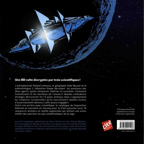 Une BD culte décryptée par trois scientifiques ! L'astrophysicien Roland Lehoucq, le géographe Alain Musset et le paléontologue J.-Sébastien Steyer décodent les aventures des deux agents spatio-temporels Valérian et Laureline. Comment franchissent-ils les barrières de l'univers ? Quelles civilisations étranges découvrent-ils ? A quels animaux réels s'apparentent les créatures surnaturelles qu'ils rencontrent ? Quelles formes d'asservissement dénonce cette oeuvre engagée ? Outre son arrière-pays scientifique, le catalogue de l'exposition Valérian et Laureline en mission pour la Cité présente aussi 18 séquences animées en réalité augmentée qui offrent une vision inédite des planches les plus emblématiques de la saga.