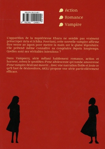 Dans Vampeerz, série mêlant habilement romance, action et horreur, suivez le quotidien d'une adolescente qui tombe amoureuse d'une vampire désirant mourir... Avec une narration fluide et juste ce qu'il faut de désinvolture, Akili propose une série particulièrement efficace. L'apparition de la mystérieuse Khara ne semble pas vraiment préoccuper Aria et Ichika. Pourtant, cette nouvelle vampire affirme être venue au Japon pour mettre la main sur le glaive légendaire. Elle prétend même connaître sa congénère depuis longtemps. Quelles sont ses véritables intentions ?