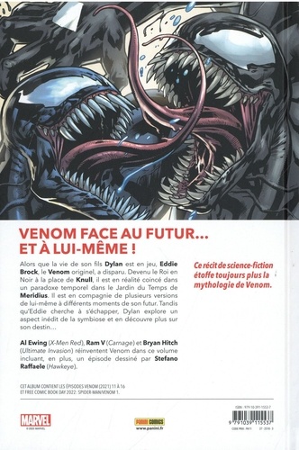Dylan Brock, le nouveau Venom, est à la merci de Bedlam. Alors qu'il est aux portes de la mort, son symbiote prend une décision lourde de conséquences qui pourrait tout changer pour le jeune héros. Mais où est passé Eddie Brock ? Coincé à l'autre bout du flux temporel, il rencontre un personnage bien connu dans l'univers mutant : Madelyne Pryor ! Mauvais présage... En plus de proposer son lot de rebondissements incroyables, cet album sert de prologue à Dark Web, le crossover entre Spider-Man et les X-Men qui déferlera bientôt dans les pages de MARVEL COMICS. Un album entièrement illustré par l'impeccable Bryan Hitch (Ultimates) !