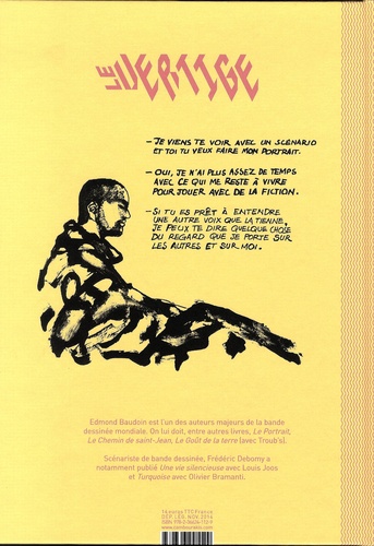 " Qu'est-ce qui vaut la peine d'être dit de moi ? " Frédéric Debomy, journaliste et scénariste de BD, tente de décliner la proposition embarrassante de son ami, le grand Edmond Baudoin : lui tirer le portrait. En vain. Pour le dessinateur, cette pudeur constitue au contraire l'amorce idéale, celle d'une esquisse au trait charbonneux, où les fragments épars d'une trajectoire à la fois banale et exceptionnelle - amour, attente, rupture ou deuil - se répondent à travers un double prisme : le regard que les autres portent sur soi et celui qu'on porte aux autres. Au fil du dialogue qui s'établit peu à peu entre les deux hommes, le récit graphique prend ses libertés, et le style inimitable de Baudoin, à mi-chemin entre peinture et bande dessinée, fait la part belle à l'imaginaire et à la suggestion. Un tableau dansant, direct, fluide et fuyant comme la vie.
