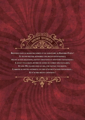 Un recueil de l'aube, où Fujita s'autorise l'expérimentation la plus libre et la plus audacieuse. Bienvenue dans le monde des esprits et du surnaturel de Kazuhiro Fujita ! Ce second recueil rassemble cinq récits exceptionnels, mêlant action haletante, fantasy émouvante et aventures fantastiques : L'assaut fulgurant, bourré de scènes de combat spectaculaires, et avec Des plumes dans le ciel, une fantasy touchante, L'arrivée du roi des gourmets, un chef-d'oeuvre d'action fantastique... Et d'autres récits captivants ! Entre humour, science-? ction et aventure, Fujita explore des terrains inédits tout en gardant son trait expressif et son sens du rythme.