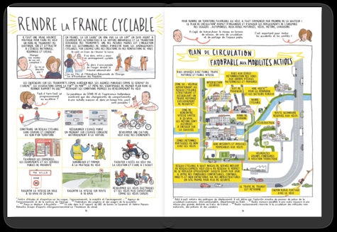 Une enquête dessinée pour donner envie de pédaler. Economique et écologique, le vélo ne manque pas d'atouts et fait autant de bien au corps qu'à l'esprit. Pourtant, en France, seule une petite part des déplacements (3%) se fait à bicyclette, même si ce chiffre augmente chaque année. Convaincus que pédaler répond à de nombreux défis actuels - la santé, la mobilité, la logistique, l'environnement ou encore le pouvoir d'achat -, Céline et Valéry, vélotafeurs et voyageurs à vélo depuis une dizaine d'années, partagent leur passion dans ce récit graphique. Une véritable enquête illustrée qui interroge en profondeur l'écosystème vélo, dans laquelle ils exposent les enjeux sociologiques, économiques et climatiques liés à ce mode de déplacement, et démontent avec humour et pédagogie les idées reçues qui freinent les débutants. Ils partagent aussi leurs meilleures astuces pratiques : bien choisir sa monture, l'entretenir et s'équiper sans se compliquer la vie. Avec les portraits inspirants d'experts et de passionnés : la climatologue Valérie Masson-Delmotte, le patron de Brompton Will Butler-Adams, le chercheur Aurélien Bigo, l'ancien président de la FUB Olivier Schneider, l'auteur et militant cycliste Stein van Oosteren...