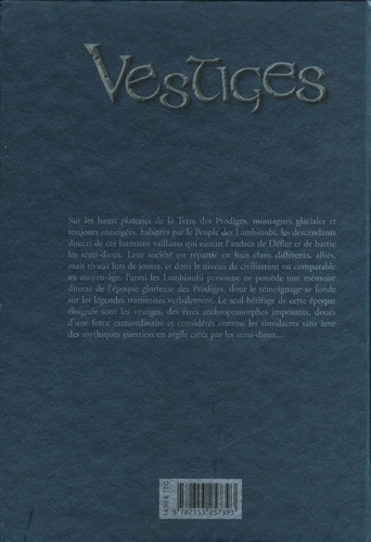 Sur les hauts plateaux de la Terre des Prodiges, montagnes glaciales et toujours enneigées, habitées par le Peuple des Lambinubi, les descendants directs de ces humains vaillants qui eurent l'audace de Défìer et de battre les semi-dieux. Leur société est répartie en huit clans différents, alliés, mais rivaux lors de joutes, et dont le niveau de civilisation est comparable au moyen-âge. Parmi les Lambinubi personne ne possède une mémoire directe de l'époque glorieuse des Prodiges, dont le témoignage se fonde sur les légendes transmises verbalement. Le seul héritage de cette époque éloignée sont les vestiges, des êtres anthropomorphes imposants, doués d'une force extraordinaire et considérés comme les simulacres sans âme des mythiques guerriers en argile créés par les semi-dieux...