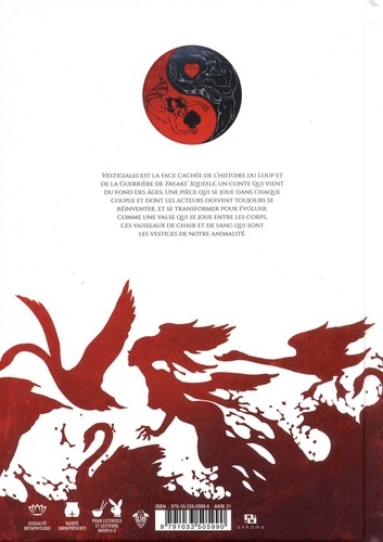 Vestigiales est la face cachée de l'histoire du loup et de la guerrière de freaks'squeele, un conte qui vient du fond des âges. Une pièce qui se joue dans chaque couple et dont les acteurs doivent toujours se réinventer, et se transformer pour évoluer. Comme une valse qui se joue entre les corps, ces vaisseaux de chair et de sang qui sont les vestiges de notre animalité.