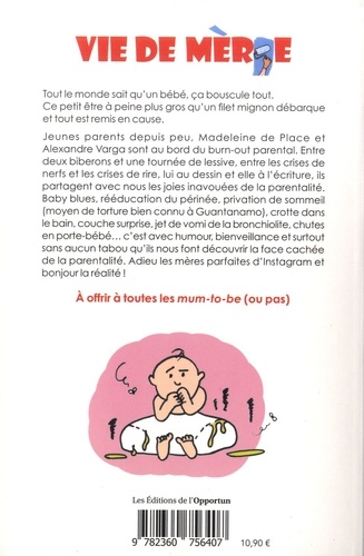Tout le monde sait qu'un bébé, ça bouscule tout. Ce petit être à peine plus gros qu'un filet mignon débarque et tout est remis en cause. Jeunes parents depuis peu, Madeleine de Place et Alexandre Varga sont au bord du burn-out parental. Entre deux biberons et une tournée de lessive, entre les crises de nerfs et les crises de rire, lui au dessin et elle à l'écriture, ils partagent avec nous les joies inavouées de la parentalité. Baby blues, rééducation du périnée, privation de sommeil (moyen de torture bien connu à Guantanamo), crotte dans le bain, couche surprise, jet de vomi de la bronchiolite, chutes en porte-bébé... c'est avec humour, bienveillance et surtout sans aucun tabou qu'ils nous font découvrir la face cachée de la parentalité. Adieu les mères parfaites d'Instagram et bonjour la réalité ! A offrir à toutes les mum-to-be (ou pas).