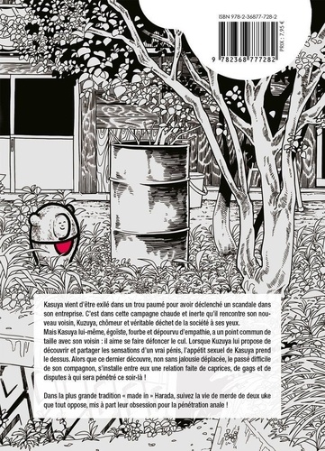 Kasuya vient d'être exilé dans un trou paumé pour avoir déclenché un scandale dans son entreprise. C'est dans cette campagne chaude et inerte qu'il rencontre son nouveau voisin, Kuzuya, chômeur et véritable déchet de la société à ses yeux. Mais Kasuya lui-même, égoïste, fourbe et dépourvu d'empathie, a un point commun de taille avec son voisin : il aime se faire défoncer le cul. Lorsque Kuzuya lui propose de découvrir et partager les sensations d'un vrai pénis, l'appétit sexuel de Kasuya prend le dessus. Alors que ce dernier découvre, non sans jalousie déplacée, le passé difficile de son compagnon, s'installe entre eux une relation faite de caprices, de gags et de disputes à qui sera pénétré ce soir-là ! Dans la plus grande tradition "made In" Harada, suivez la vie de merde de deux uke que tout oppose, mis à part leur obsession pour la pénétration anale !