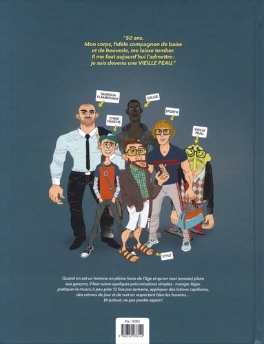 "50 ans. Mon corps, fidèle compagnon de baise et de beuverie, me laisse tomber. Il me faut aujourd'hui l'admettre : je suis devenu une vieille peau." Quand on est un homme en pleine force de l'âge et qu'on veut (encore) plaire aux garçons, il faut suivre quelques préconisations simples : manger léger, pratiquer la muscu à peu près 12 fois par semaine, appliquer des lotions capillaires, des crèmes de jour et de nuit en respectant bien les horaires... Et surtout, ne pas perdre espoir !