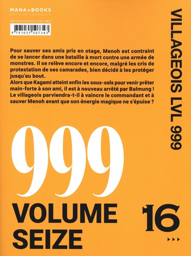 Un grand LVL implique de grandes responsabilités ! Pour sauver ses amis pris en otage, Menoh est contraint de se lancer dans une bataille à mort contre une armée de monstres. Il se relève encore et encore, malgré les cris de protestation de ses camarades, bien décidé à les protéger jusqu'au bout. Alors que Kagami atteint enfin les sous-sols pour venir prêter main-forte à son ami, il est à nouveau arrêté par Balmung ! Le villageois parviendra-t-il à vaincre le commandant et à sauver Menoh avant que son énergie magique ne s'épuise ?